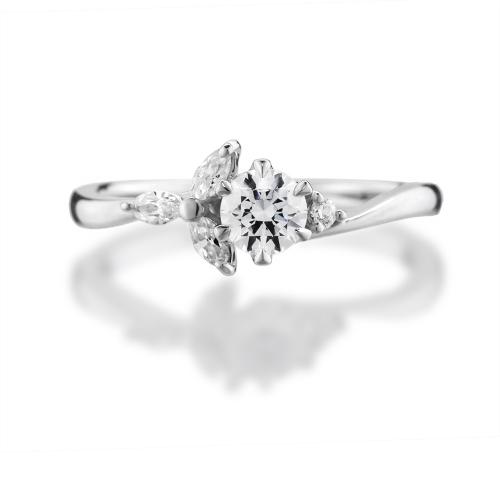 中央に向かってシャープに絞ったストレートラインのアームがモダンな雰囲気を醸し出す婚約指輪です。繊細なミル打ちとメレダイヤをあしらい、豊かな煌めきがセンターのダイヤモンドを引き立てます。高さを持たせたダイヤモンドはたっぷりと光を採り込んでよりいっそうの輝きを放ち、どこから見ても煌めく華やかさが指先を美しく彩ります。上品なフォルムだから重ねづけが楽しめ、ファッションに合わせてよりエレガントにも豪華にも。