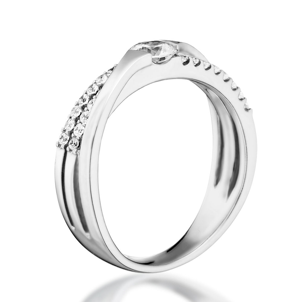 3連リングのようなラインに中石のダイヤを埋め込んだモダンなリング